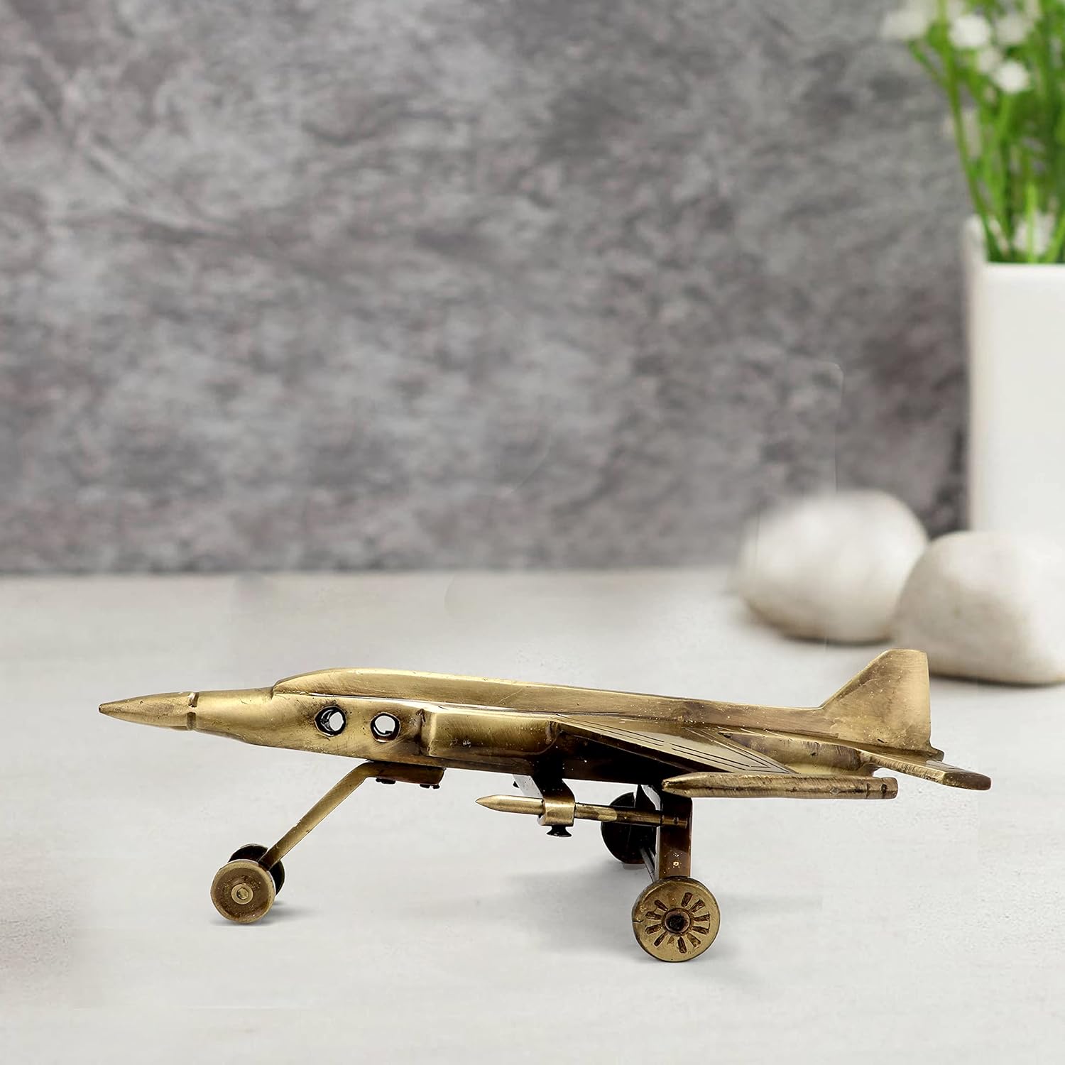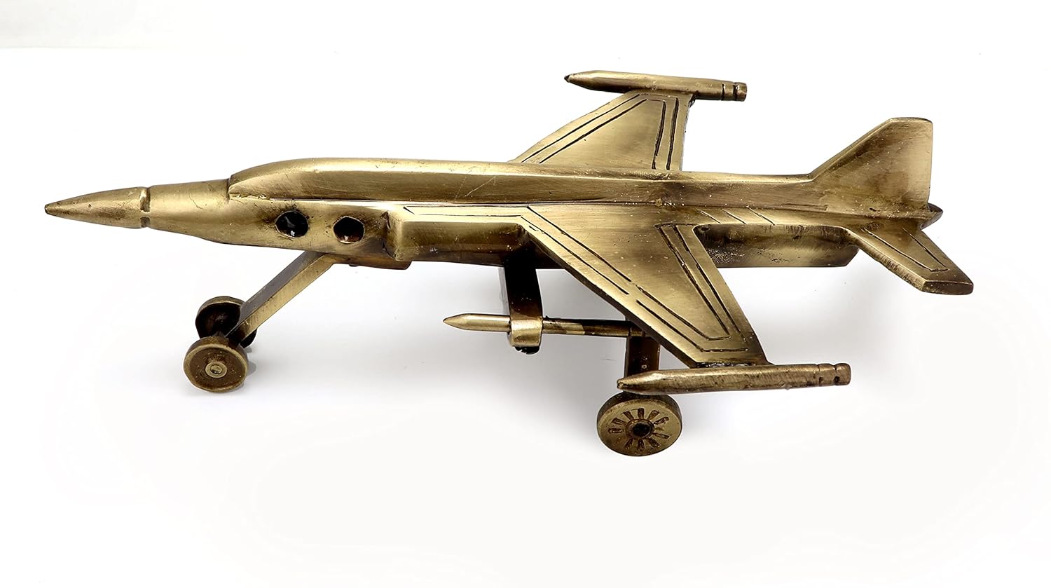 It is a perfect gift choice for those who are fond of exhibiting one-of-a-kind elements in their homes. This product which is made from Brass material with antique finish, makes this fighter jet showpiece sturdy durable and definitely an eye catcher.