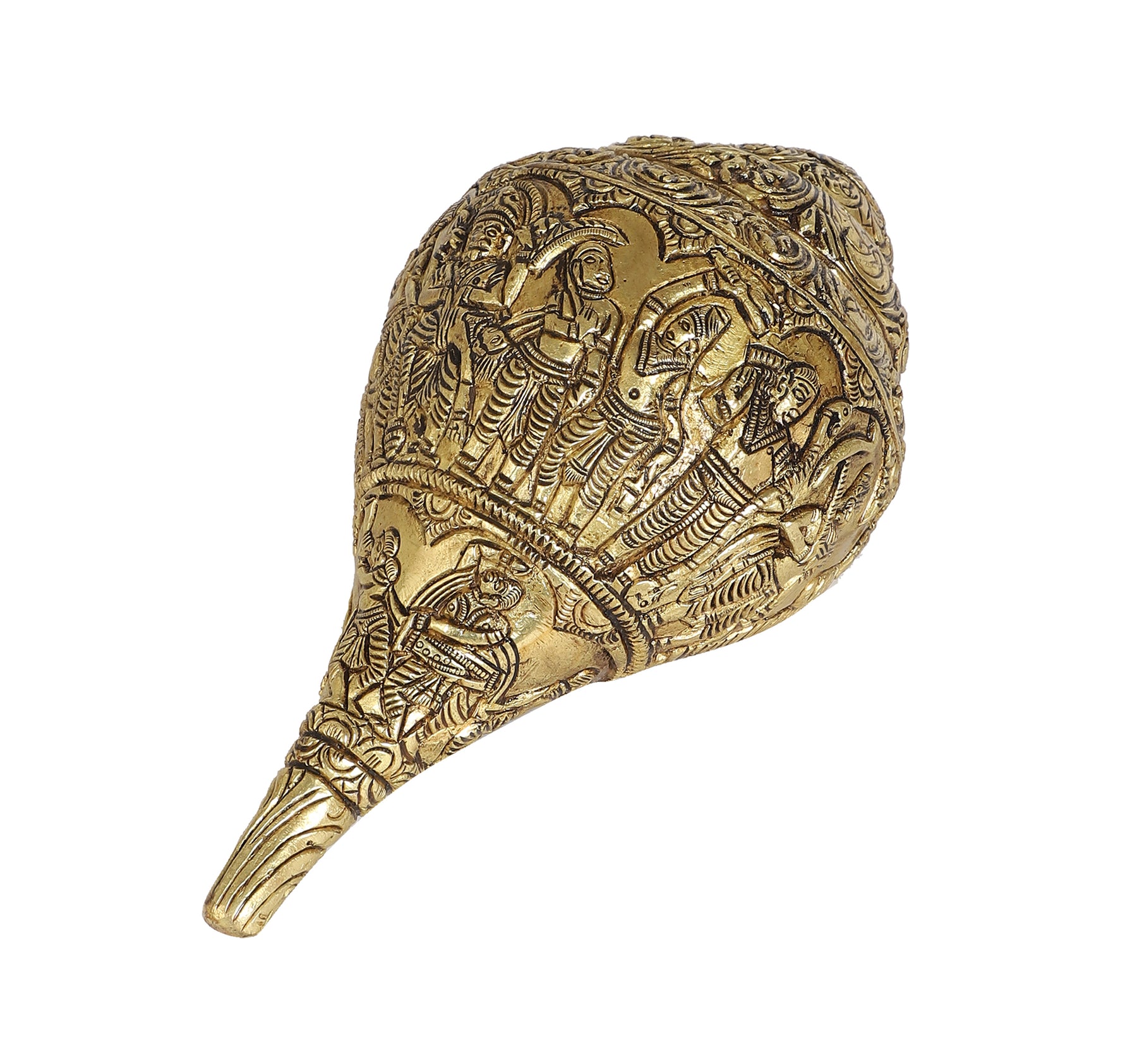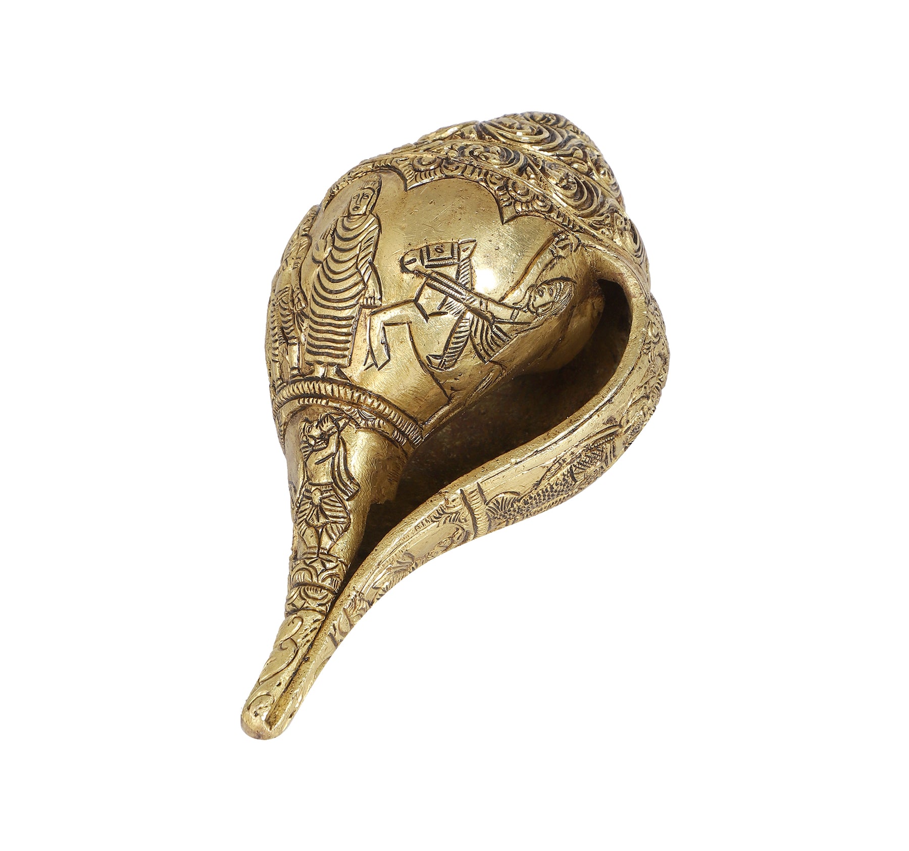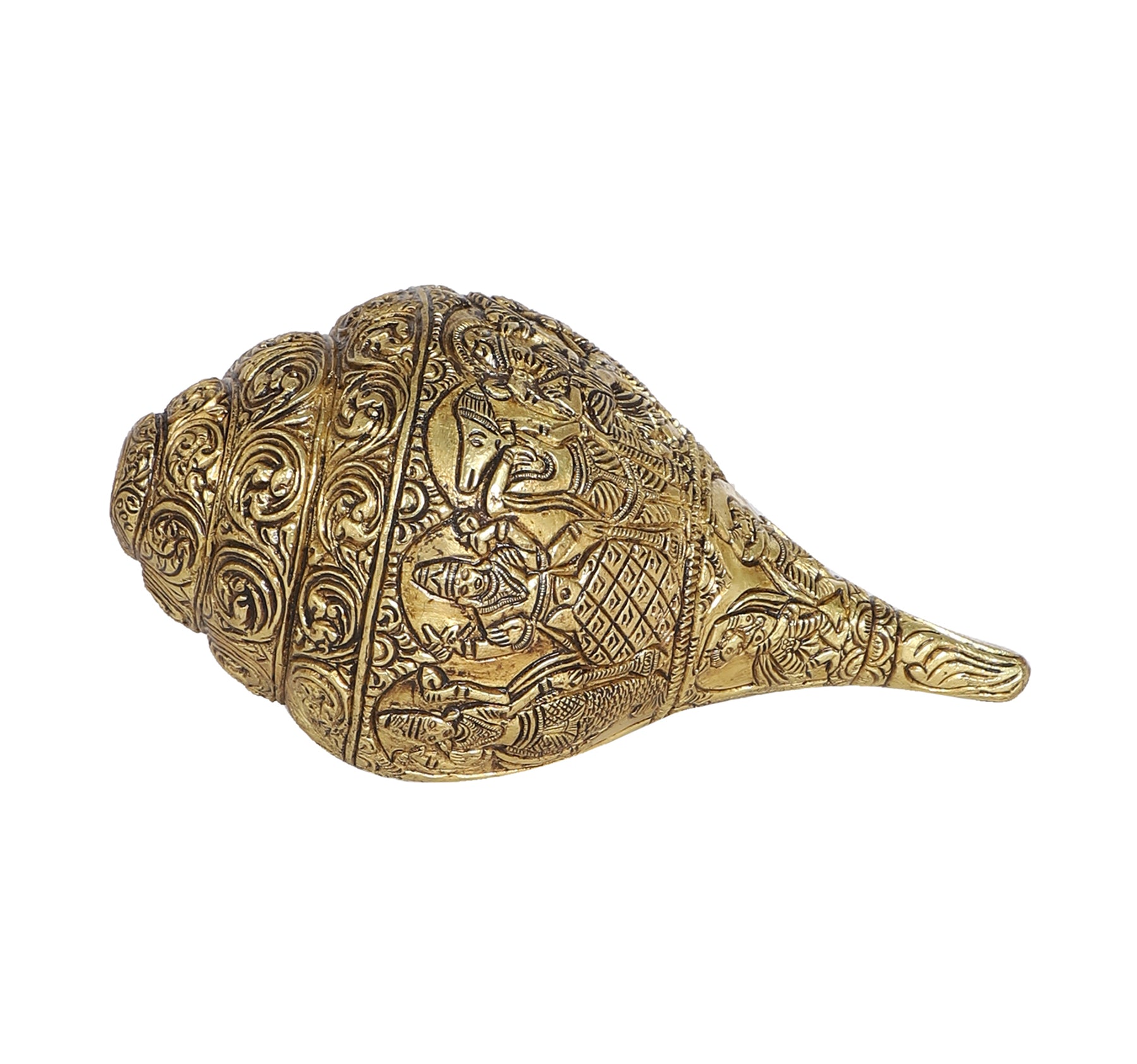 Dashavatara refers to the ten primary avatars of Vishnu, the Hindu god of preservation. All the ten incarnations of Lord Vishnu are very detailed and perfectly carved in this Brass Shankh. Weighing approx. 2.25 Kg, this sturdy Brass Shankh will be a perfect addition to your home or temple.