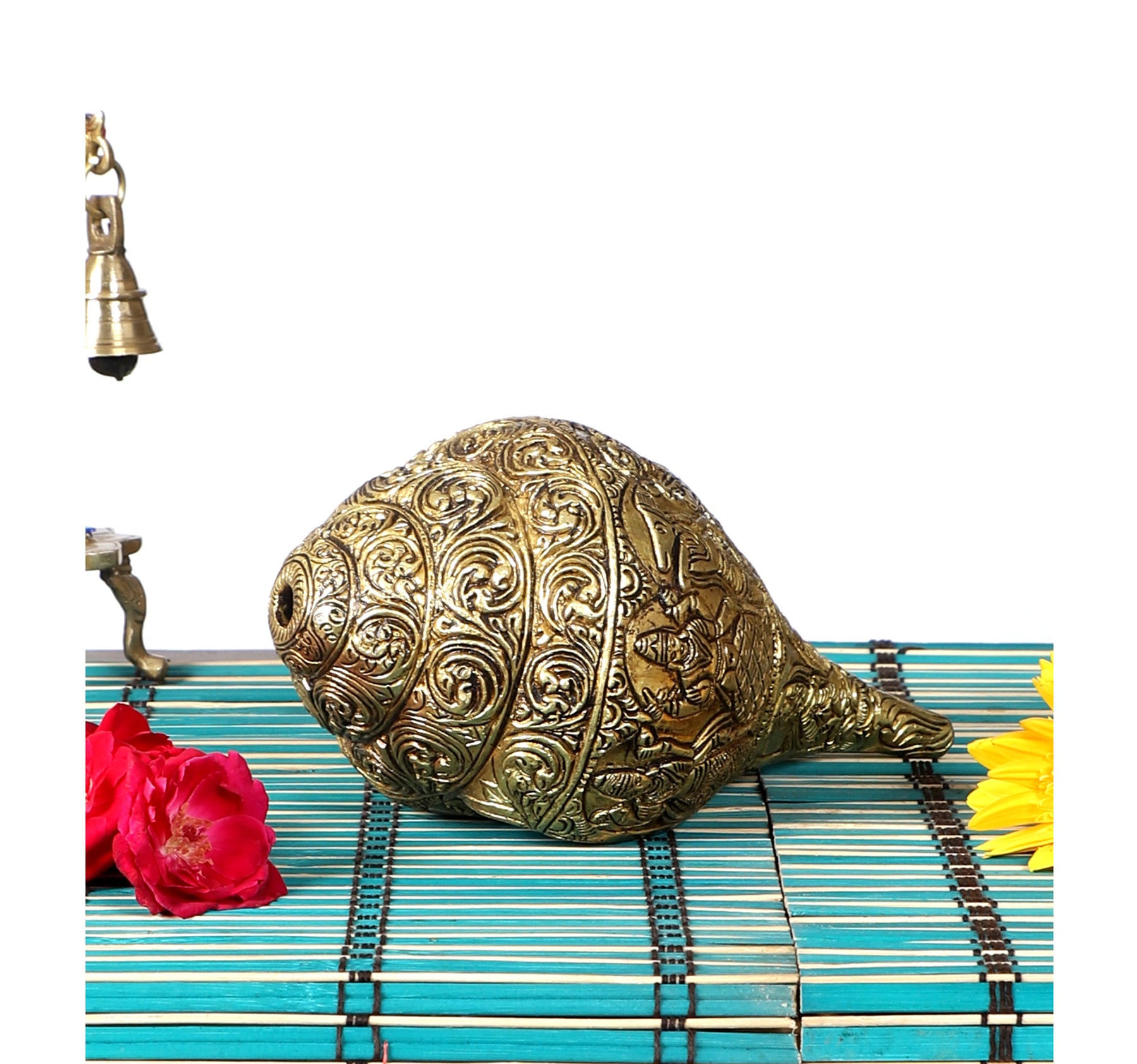 If you are fond of collecting ethnic looking decor items for your home then you should not miss out the chance to get this Brass Vishnu Dashavatara carved Shankh from the house of Two Moustaches. This product will add a traditional appeal to your space instantly.