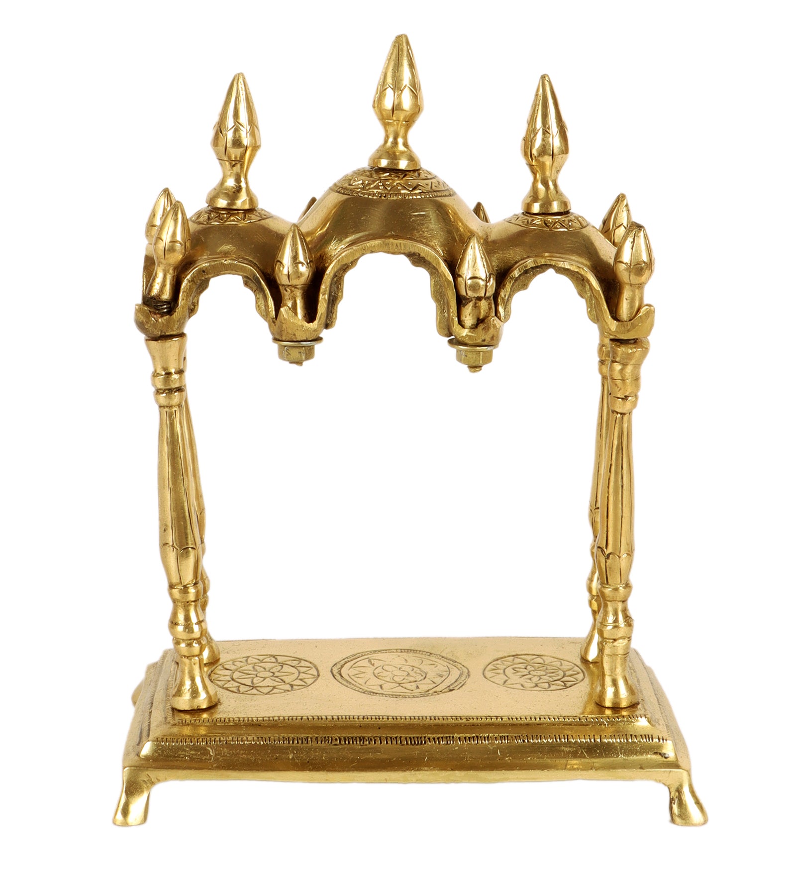 The Brass Temple has been handcrafted using high quality, unadulterated brass, keeping in mind both functionality and aesthetic beauty. The Brass Temple mixes the best of both functionality as well as beauty, creating the perfect structure in which to create one's private temple; an essential addition to any home, the Brass Temple also makes for a great gift for loved ones.